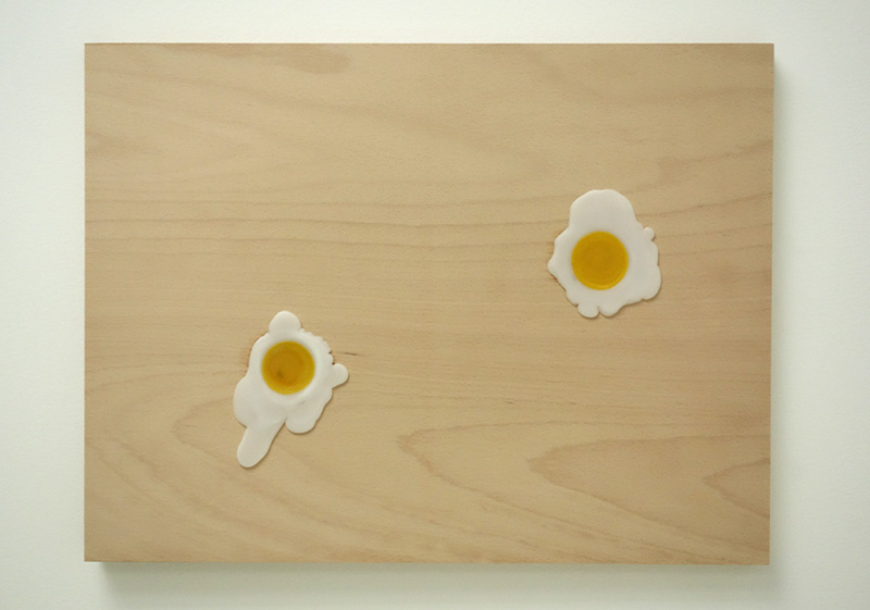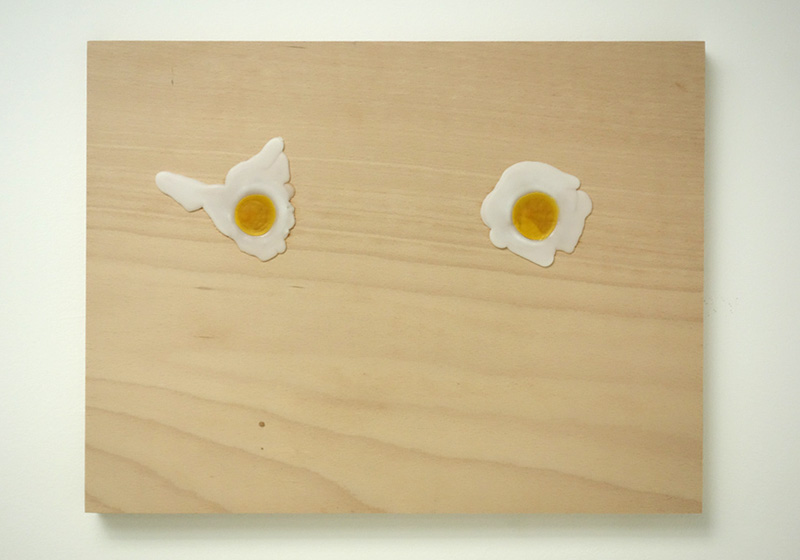 Over Easy, encaustic (candlewax) and tempera (eggyolks) on wood, 45cm x 60cm, 2017